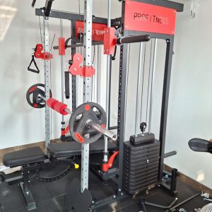 | Phụ kiện kèm theo | Dây kéo xô, thanh đòn chuẩn Olympic, tay kéo chữ V, ghế đẩy tạ, đòn gánh Smith |